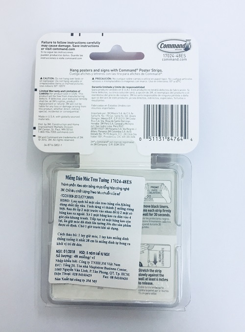 -Cách tháo bỏ: 1 tay giữ móc, 1 tay kéo miếng dính thẳng xuống ít nhất 38 cm là miếng dính tự bong ra khỏi vị trí đã dán.